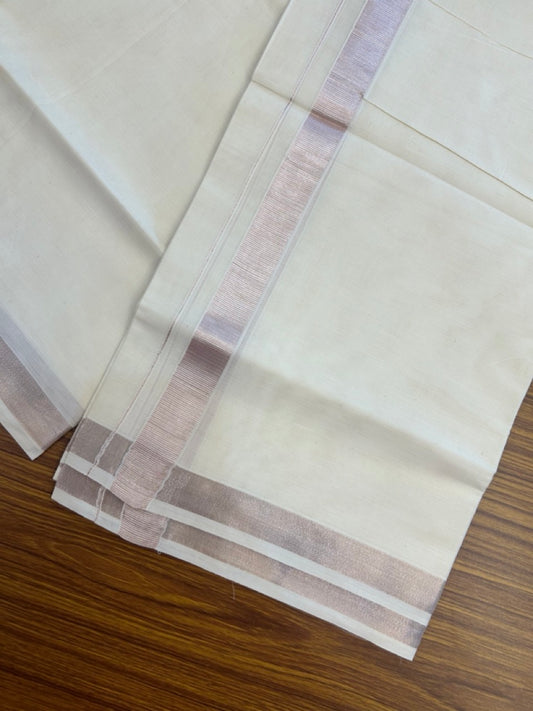19% Discount! KaithariKada Balaramapuram Double Off White - (Ubleached) Mundu/Dhoti - Cotton mix - 80s - 1 inch Light Rose Pink kasavu Kara 4 mtr (8.5 Muzham) - 40 KK5284 PMC