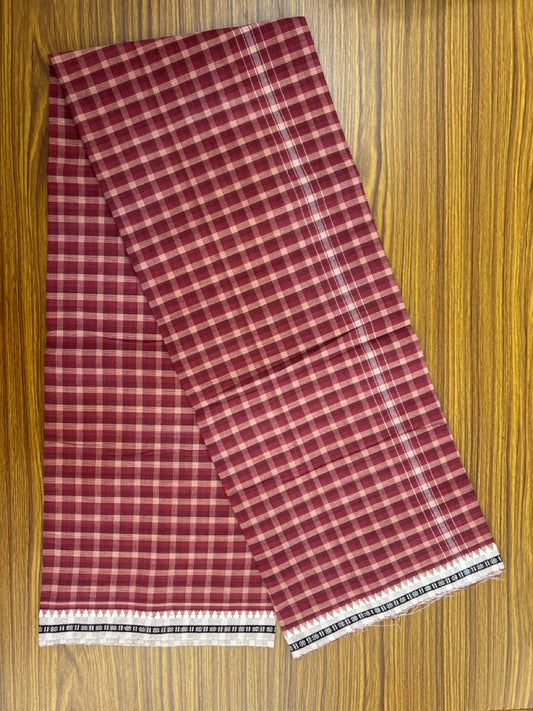 Premium Kathar Type Mund Pure cotton - Kaitharikada - Single Kaily / Lungi - 1.25 inch White Kara kuppadam Border with Maroon White Check colour body (2 meter / 4 muzham)- 11 KK8031 MUT