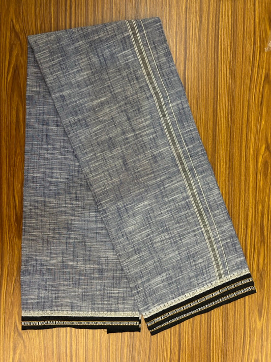 Premium Kathar Type Mund Pure cotton - Kaitharikada - Single Kaily / Lungi - 1.25 inch Black Kara kuppadam Border with Navy Blue White Shaded colour body (2 meter / 4 muzham)- 8 KK8031 MUT