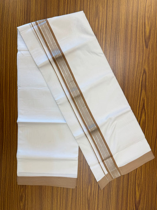 Pure White Double 20% Discount! KaithariKada 100% Cotton Pure Cotton Double Mundu / Dhoti - 100x80 - 1.5 inch Brown Jacquard Silver Kasav Kara 3.80 meter (8 muzham) - 86 KK5220 THI