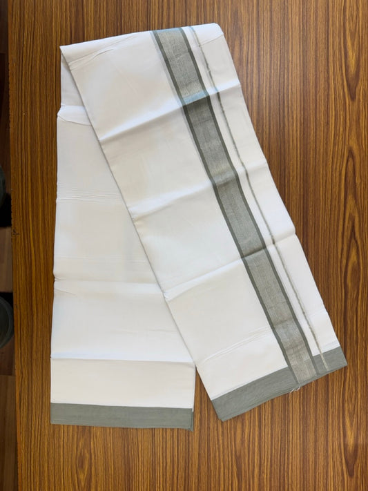 Pure White Double 20% Discount! KaithariKada 100% Cotton Pure Cotton Double Mundu / Dhoti - 100x80 - 1.5 inch Ash Green Jacquard Silver Kasav Kara 3.80 meter (8 muzham) - 88 KK5220 THI