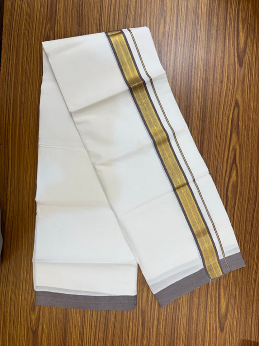 Pure White Double 20% Discount! KaithariKada 100% Cotton Pure Cotton Double Mundu / Dhoti - 100x80 - 1.5 inch Ash Lavender mix Jacquard Gold Kasav Kara 3.80 meter (8 muzham) - 97 KK5220 THI