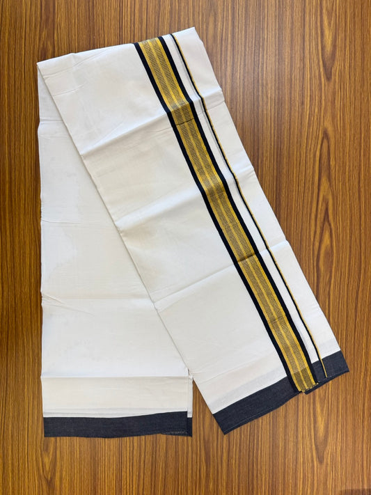 Pure White Double 20% Discount! KaithariKada 100% Cotton Pure Cotton Double Mundu / Dhoti - 100x80 - 1.5 inch Black Jacquard Gold Kasav Kara 3.80 meter (8 muzham) - 98 KK5220 THI
