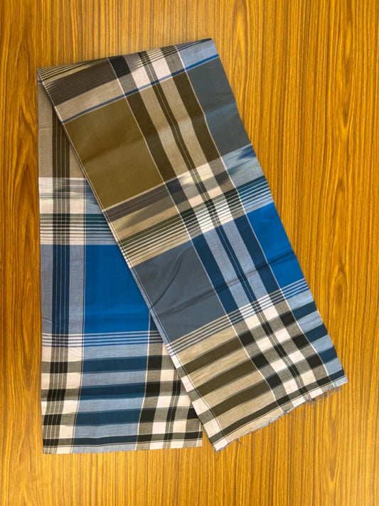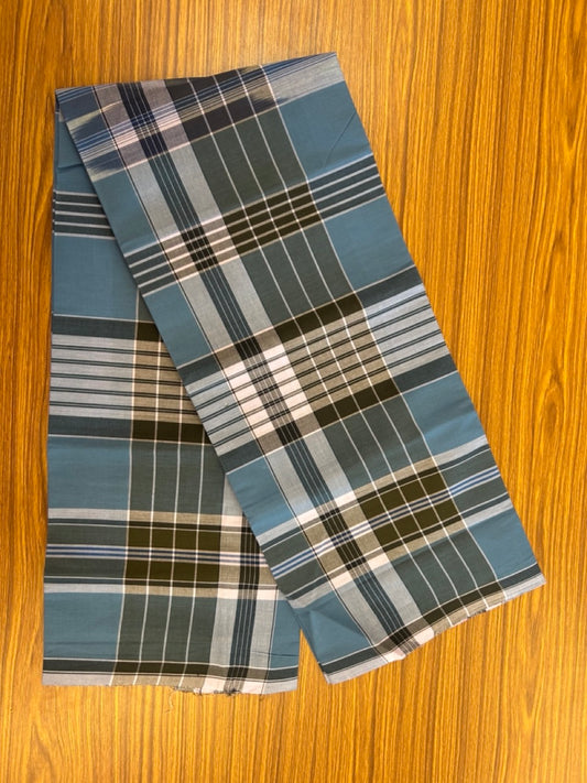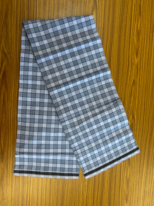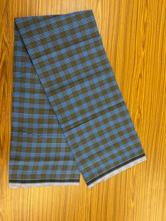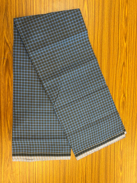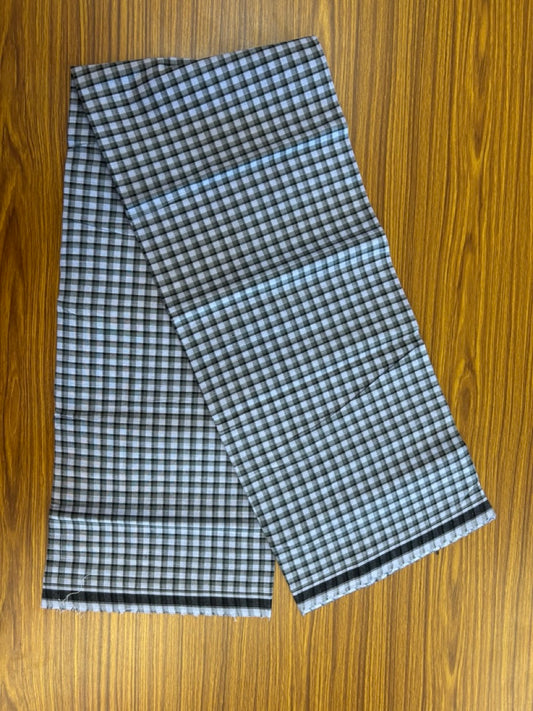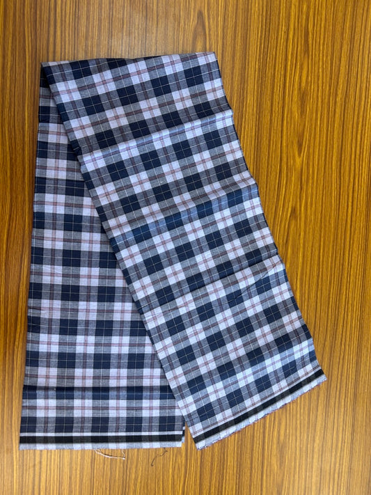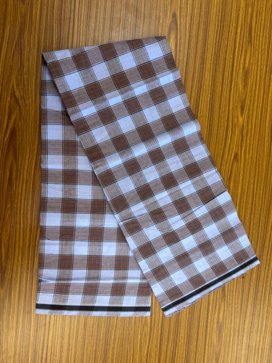 Premium Kathar Type Mund Pure cotton - Kaitharikada - Single Kaily / Lungi - 0.5 inch white Border with Brown, Light Blue , Black & White Check body (2 meter / 4 muzham) - 37 KK8039 MUT