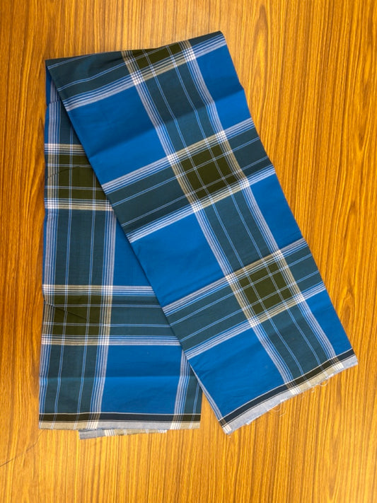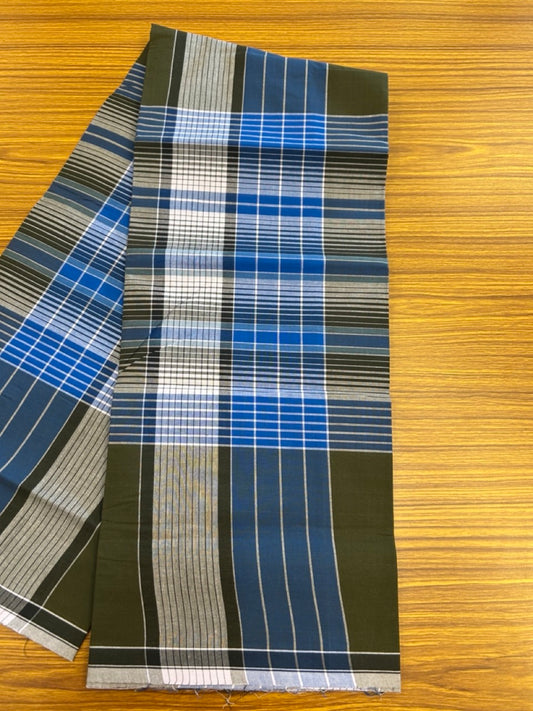 Premium Kathar Type Mund Pure cotton - Kaitharikada - Single Kaily / Lungi - 0.5 inch White Border with Olive Green , Blue & Black Stripes body 2.10 mtr (2.10 meter / 4 muzham) - 36 KK8039 MUT