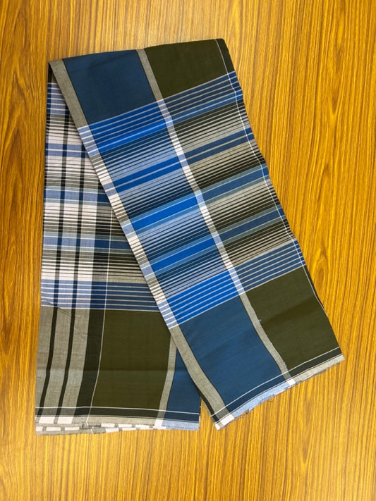 Premium Kathar Type Mund Pure cotton - Kaitharikada - Single Kaily / Lungi - 0.5 inch White Border with Olive Green , Blue & Black Stripes body 2.10 mtr (2.10 meter / 4 muzham) - 39 KK8039 MUT