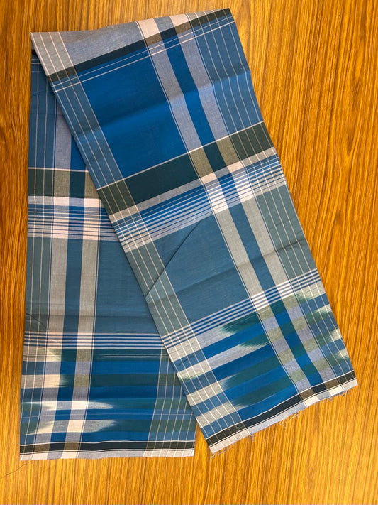 Premium Kathar Type Mund Pure cotton - Kaitharikada - Single Kaily / Lungi - 0.5 inch white Border with Green & Black Check body (2 meter / 4 muzham) - 41 KK8039 MUT