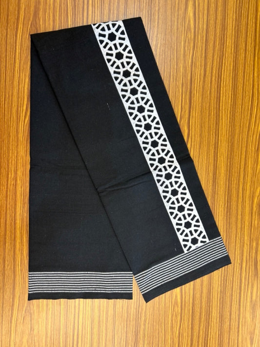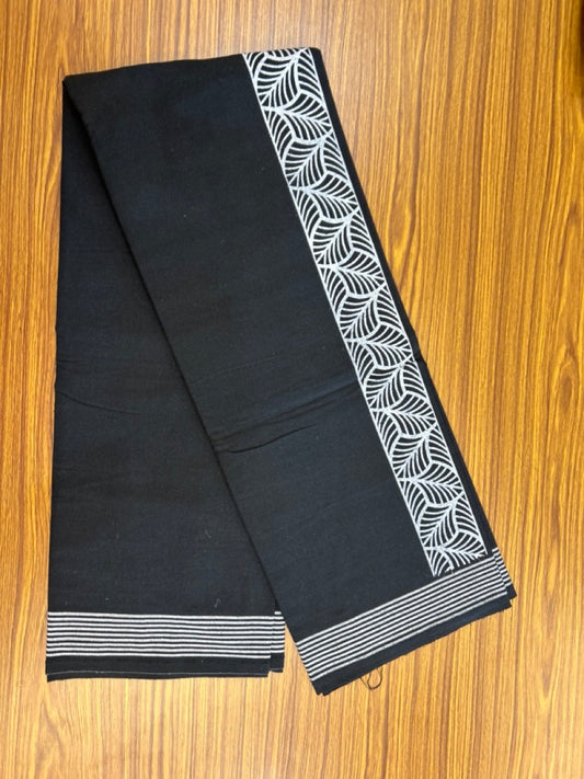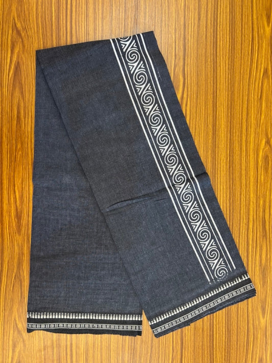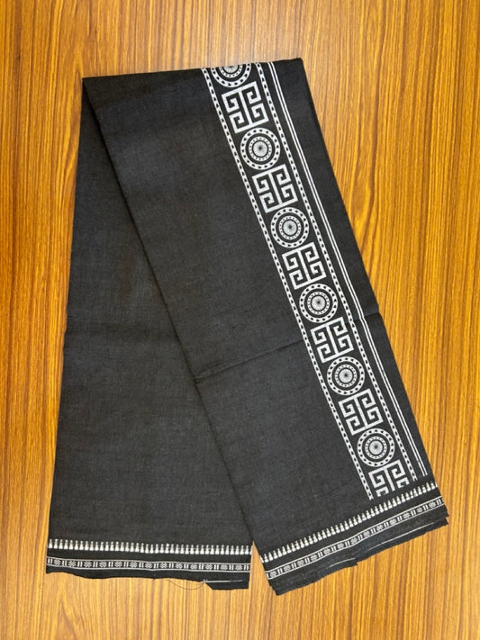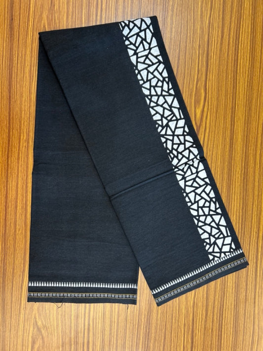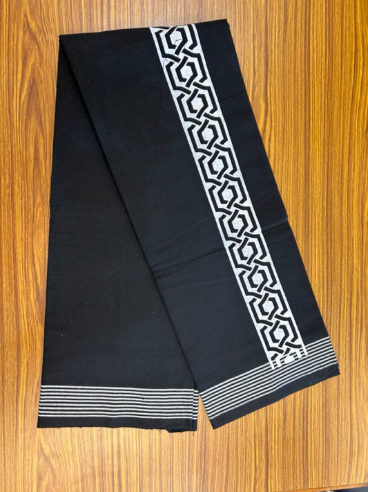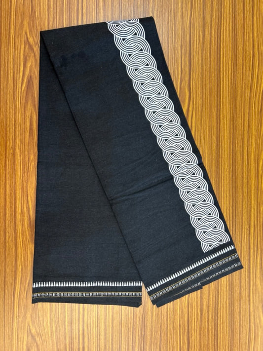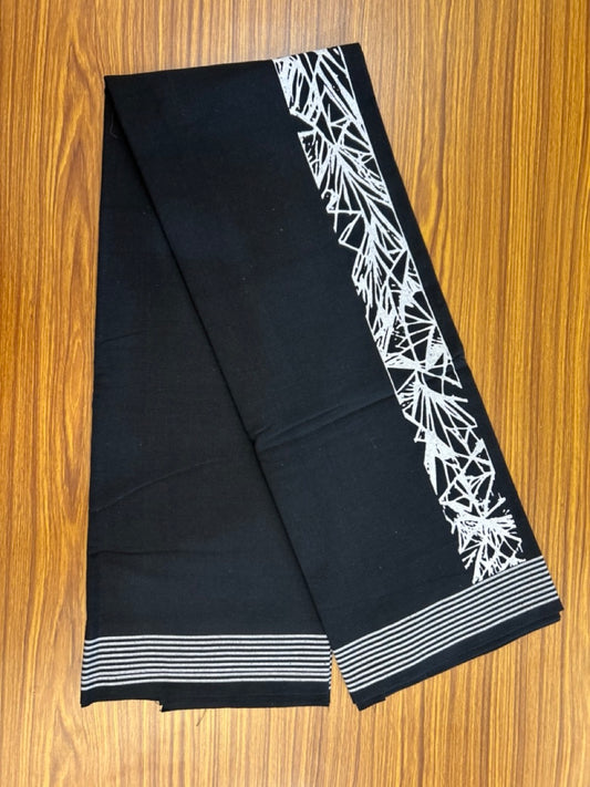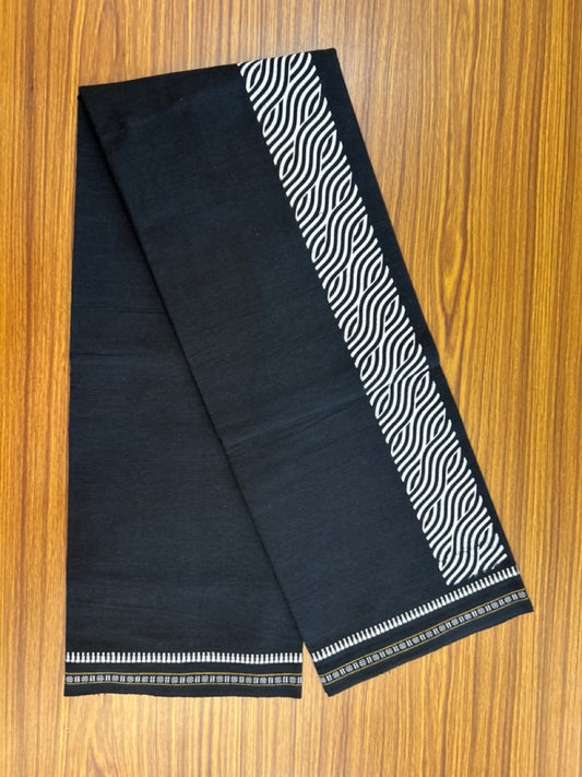 ₹239+80 (Shipping) Kaitharikada - Single Kaily / Lungi - Polyster + Cotton - 20s twisted - 2.5 inch White Printed Kuppadam Border with Black colour body (2 meter / 4 muzham) - 2 KK8038 GAN