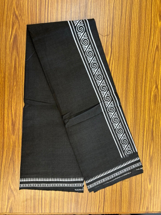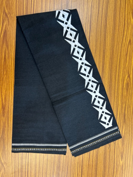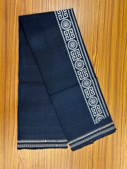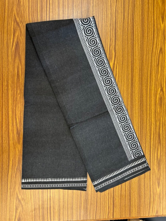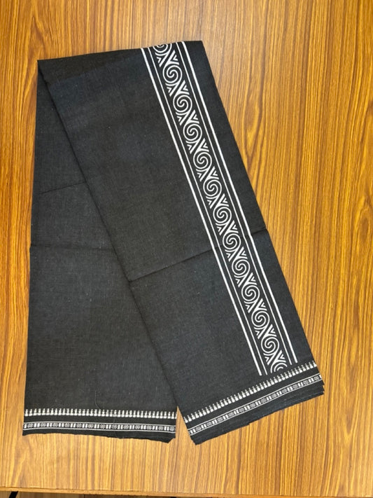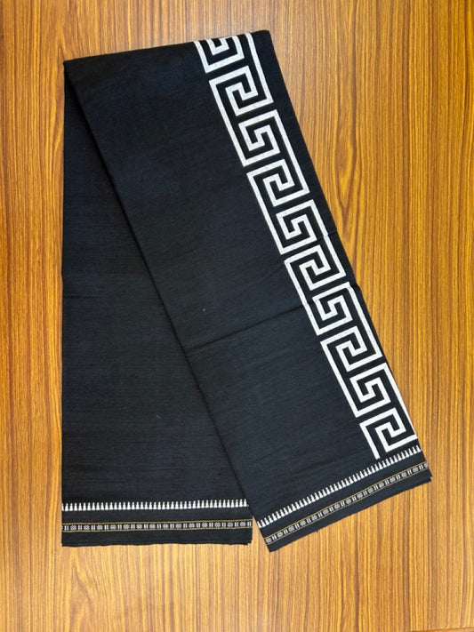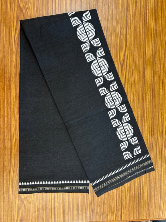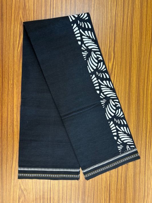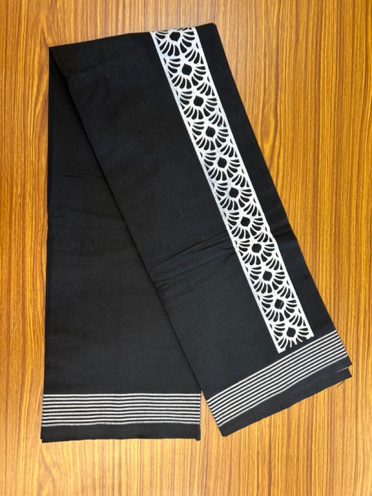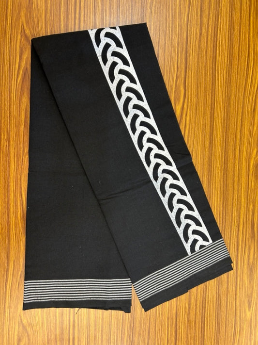 ₹239+80 (Shipping) Kaitharikada - Single Kaily / Lungi - Polyster + Cotton - 20s twisted - 2.5 inch White Printed Kuppadam Border with Black colour body (2 meter / 4 muzham) - 2 KK8038 GAN