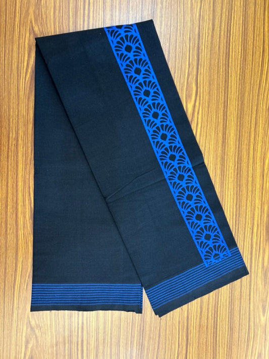 ₹239+80 (Shipping) Kaitharikada - Single Kaily / Lungi - Polyster + Cotton - 20s twisted - 2.5 inch Dark Blue Design printed kara with Black colour body - 109 KK8035 GAN