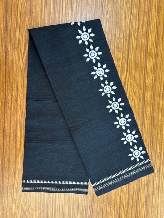 ₹239+80 (Shipping) Kaitharikada - Single Kaily / Lungi - Polyster + Cotton - 20s twisted - 2.5 inch White Flower Design printed kuppadam kara with Black colour body - 96 KK8035 GAN