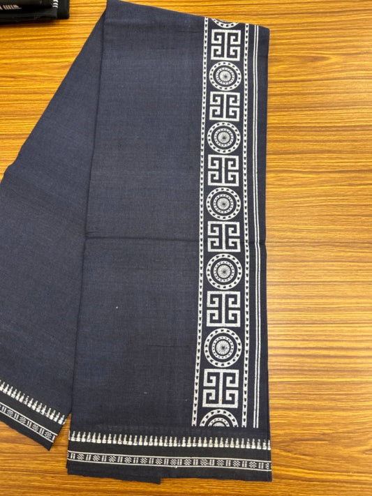 ₹239+80 (Shipping) Kaitharikada - Single Kaily / Lungi - Polyster + Cotton - 20s twisted - 2.5 inch White Design printed kara with Navy Blue colour body - 112 KK8035 GAN