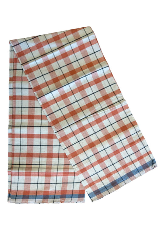 10% Discount ! KaithariKada Kalamachal 100% Pure Cotton - Handloom Single Mundu/Dhoti Red Kavi Peach Check Colour Body & Black 2.cm Kara- 161123KAILY028.Handloom Government Sealed.