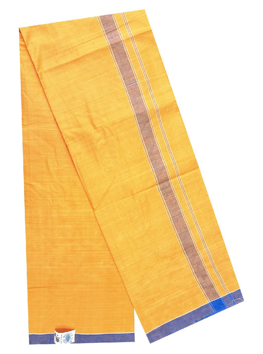 10% Discount ! KaithariKada Kalamachal 100% Pure Cotton - Handloom Single Mundu/Dhoti - Kaavi Body Navy Blue 2 inch Kara-161123Kaily008.