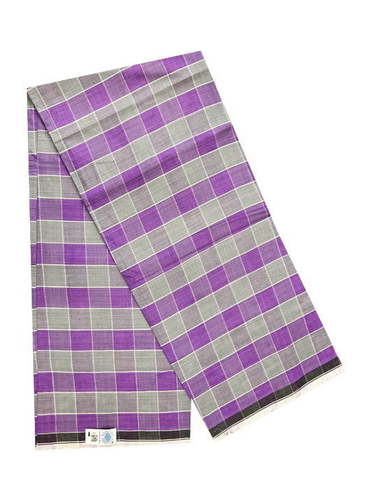 10% Discount ! KaithariKada Kalamachal 100% Pure Cotton - Handloom Single Mundu/Dhoti -Violet & Green Check Colour Body & Black & White 3.cm Kara- 161123KAILY025.Handloom Government Sealed..