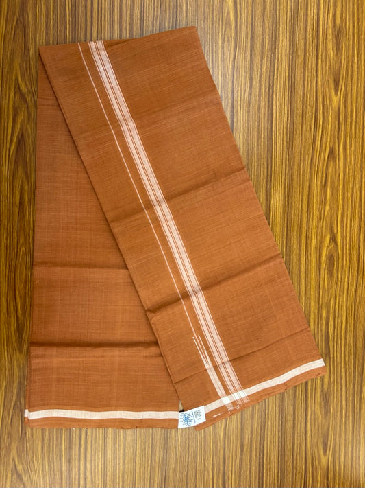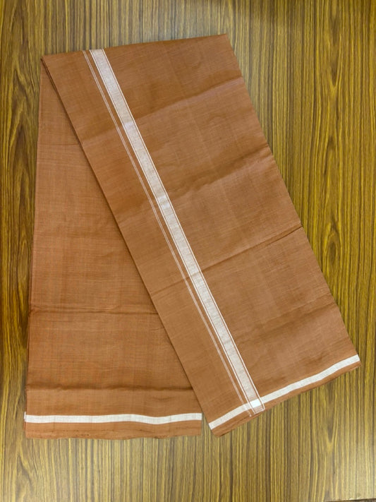 10% Discount !! KaithariKada 100% Pure Cotton - HANDLOOM Single Mundu/Dhoti KAVI Brown COLOUR BODY & 1.5 cm Puliyilakkara White Chutty Kara- 20KK8015EL