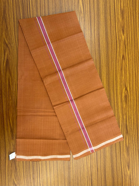 10% Discount !! KaithariKada 100% Pure Cotton - HANDLOOM Single Mundu/Dhoti KAVI Brown COLOUR BODY 2 cm White & Light Pink Shaded Kara (2 meter / 4 muzham)- 14KK8020ELA