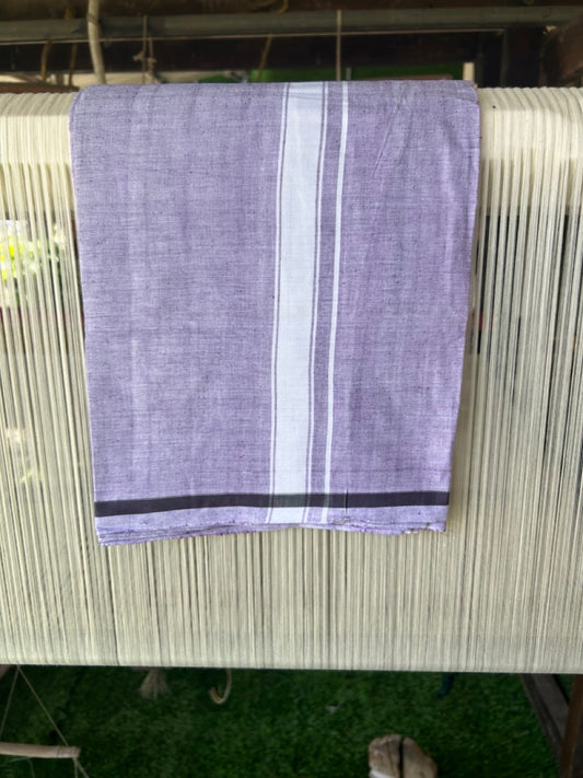 10% DISCOUNT ! KaithariKada Kalamachal 100% Pure Cotton - (80X80) Twisted Thread Handloom Single Mundu/Dhoti - Violet COLOUR BODY & White stripes 4.5 cm Kara- 19KK479KAL