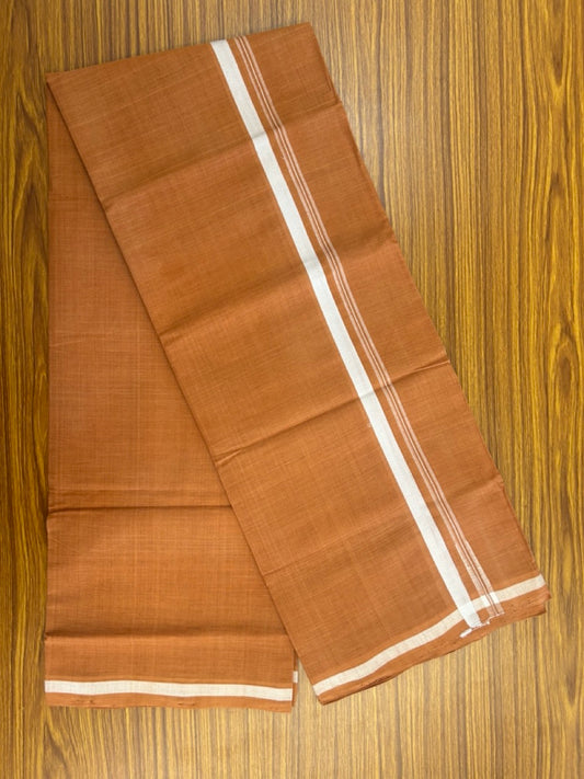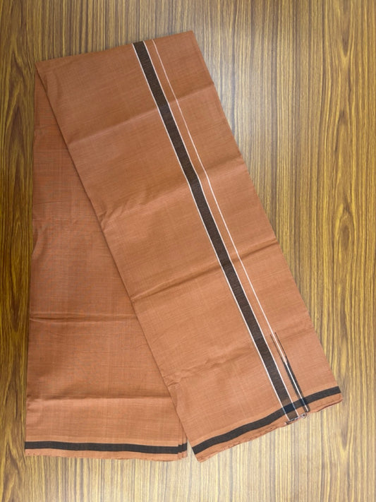 10% Discount !! KaithariKada 100% Pure Cotton - Handloom Single Mund/Dhoti Dark Brown Shaded Colour Body & White 0.5 inch Kara- (2 meter / 4 muzham)- 7 KK8032 ELA