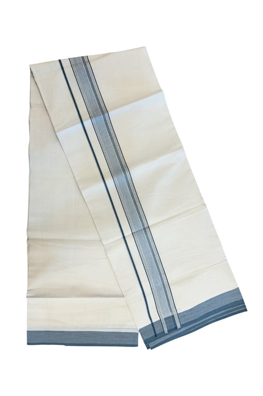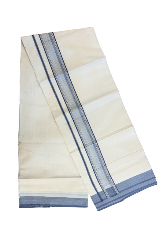 20% Discount ! KaithariKada Balaramapuram 100% Cotton Off White(Unbleached) Double Mundu/Dhoti - 100X80 - 2 inch Dark Pastel Blue & Black Shaded Designer Kara - 28KK5213 VIN