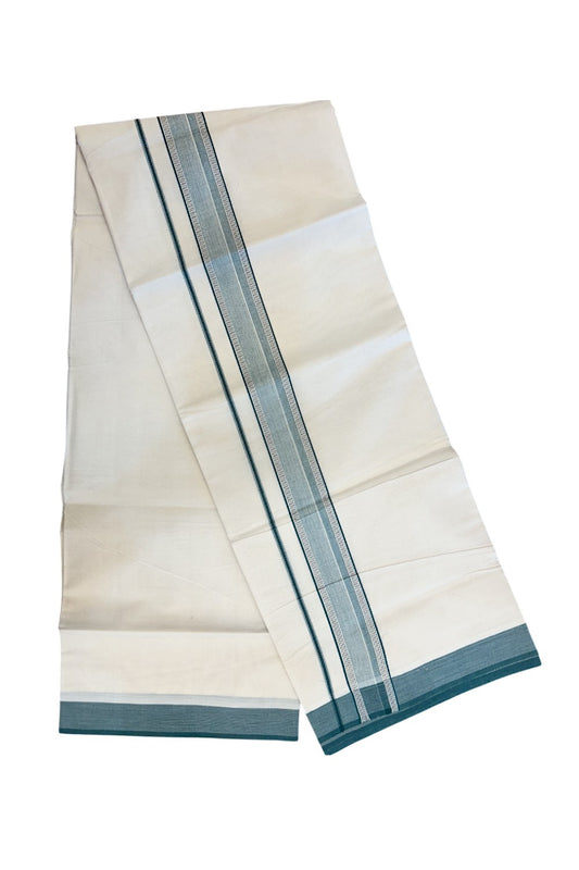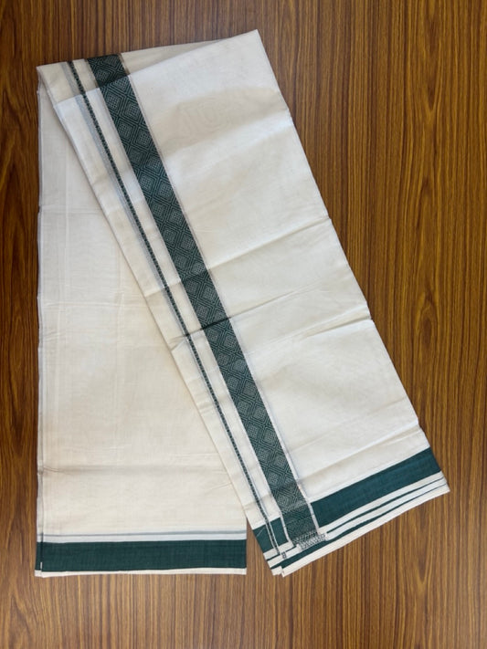 20% Discount ! KaithariKada Balaramapuram 100% Cotton Off White (Unbleached) Double Mundu/Dhoti - 100X80 - 1.5 inch Pine Green & Black Shaded Designer Kara - 20KK5213 VIN