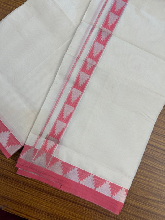 20% DISCOUNT ! KaithariKada Balaramapuram 100% Cotton Double off white (Unbleached) Mundu/Dhoti - 100X80 - 1.25 inch Silver kasavu & Pink Temple jacquard design kara - 4 mtr (8.5 Muzham) - 30 KK5283 PMC