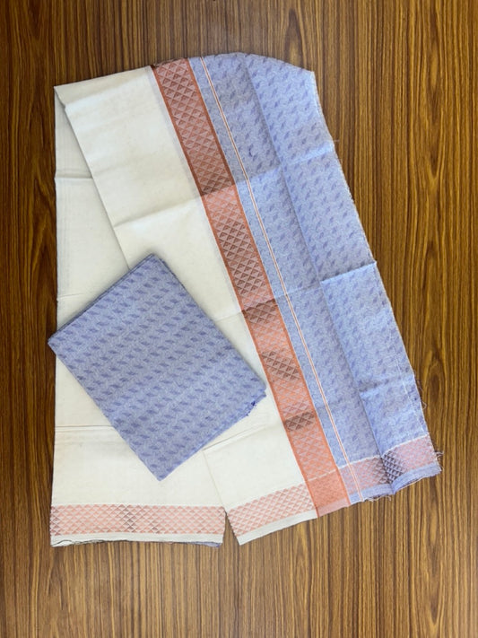 20% Discount ! Kaitharikada Balaramapuram 100% Cotton - (60)s - Single Off White Mundu/Dhoti & Shirt Material Combo - 2 inch Copper Kasavu jacquard Kara with Violet shaded shirt material - 12 KK7009 THI
