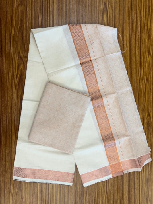 20% Discount ! Kaitharikada Balaramapuram 100% Cotton - (60)s - Single Off White Mundu/Dhoti & Shirt Material Combo - 2 inch Copper Kasav jacquard Kara with Sand Brown shaded shirt material - 13 KK7009 THI