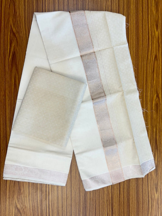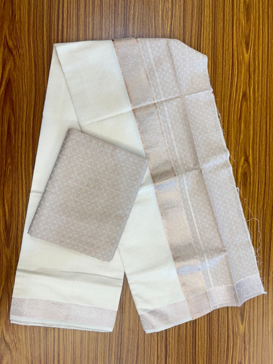 20% Discount ! Kaitharikada Balaramapuram 100% Cotton - (60)s - Single Off White Mundu/Dhoti & Shirt Material Combo - 2 inch Copper Silver Kasav jacquard Kara with Beige shaded shirt material - 17 KK7009 THI