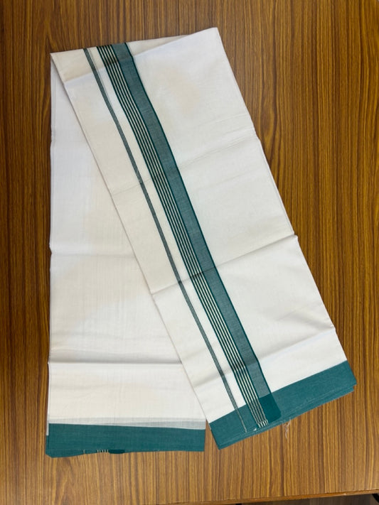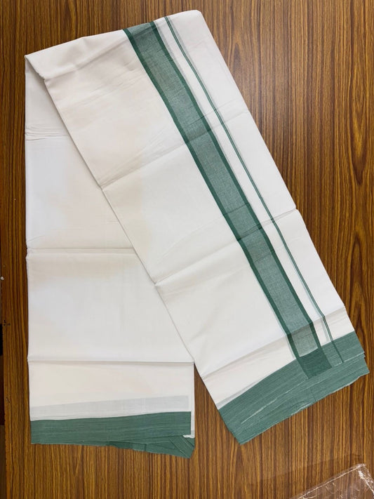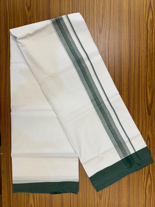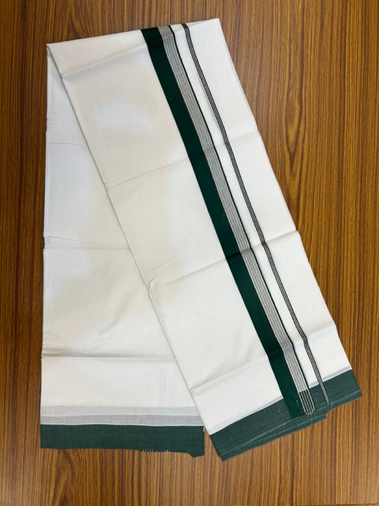 20% Discount ! KaithariKada Balaramapuram 100% Cotton Double Pure white Mundu/Dhoti- 100x80 - 1.5 inch Silver Kasav & Dark Green Striped Kara - 3.90mtr ( 8 muzham) - 7 KK5251 PMC
