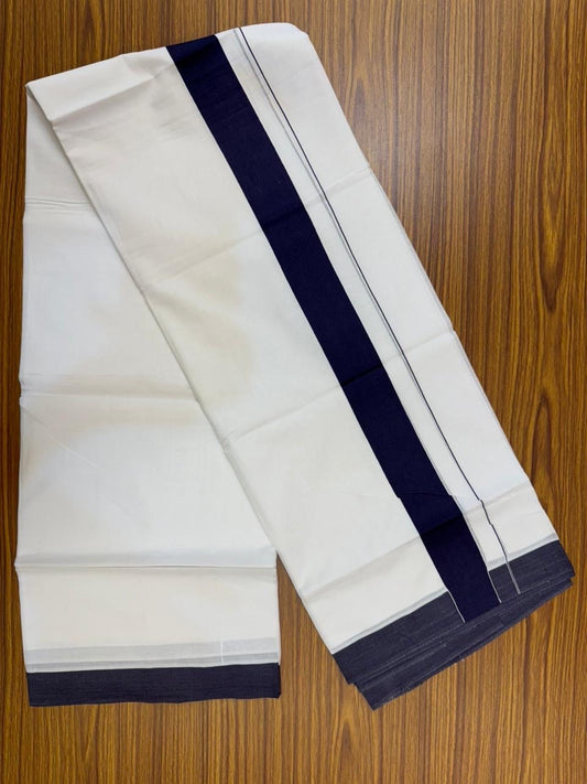 20% Discount ! KaithariKada Balaramapuram 100% Cotton Double Pure white Mundu/Dhoti- 100x80 - 1.5 inch Navy Blue Kara - 3.90mtr ( 8 muzham) - 30 KK5251 PMC