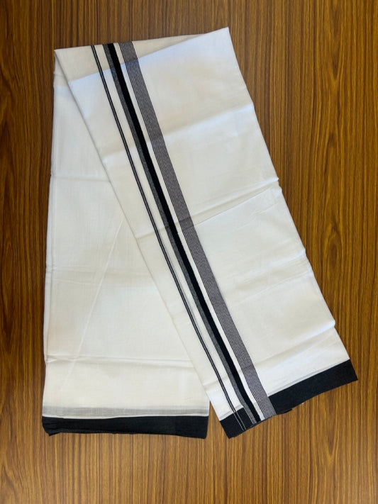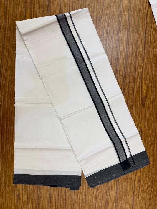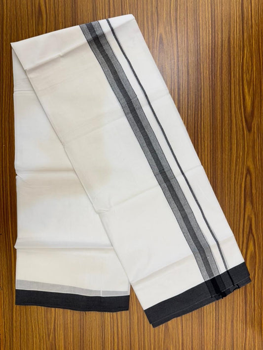 20% Discount ! KaithariKada Balaramapuram 100% Cotton Double Pure white Mundu/Dhoti- 100x100 - 1.5 inch Black & Silver Kasav Shaded Striped Kara - 4mtr ( 8 muzham) - 39 KK5253 GAN
