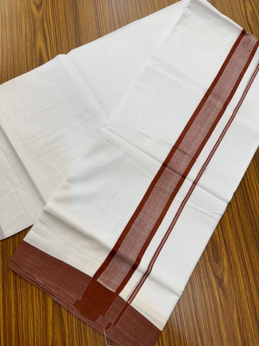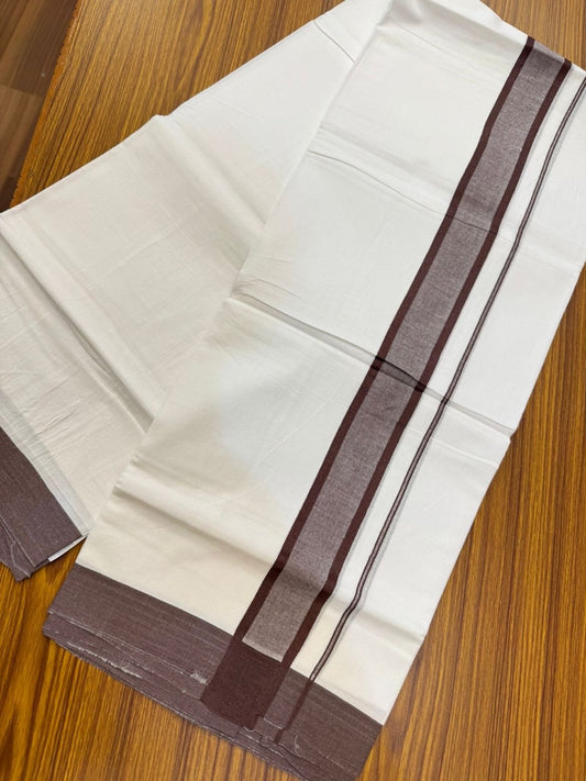 20% Discount ! KaithariKada Balaramapuram 100% Cotton Double Pure white Mundu/Dhoti- 100x80 - 1.75 inch Dark Brown shaded Kara - 3.90mtr ( 8 muzham) - 31 KK5251 PMC