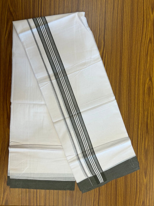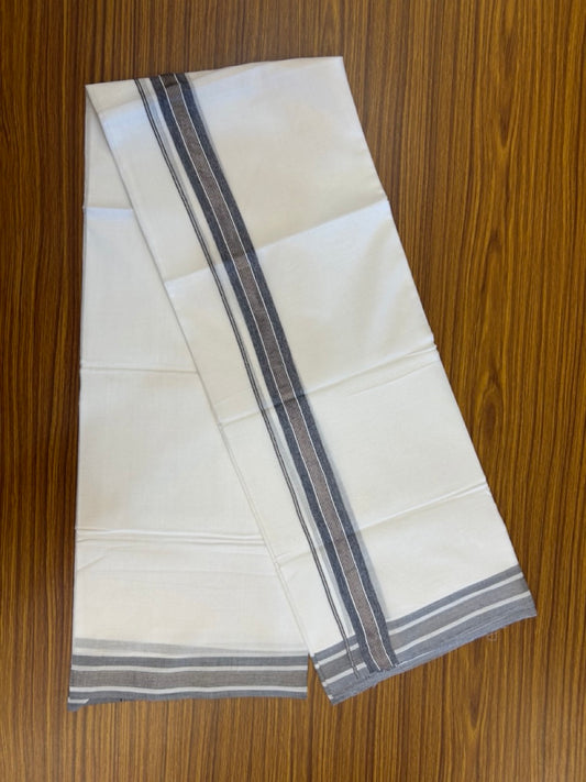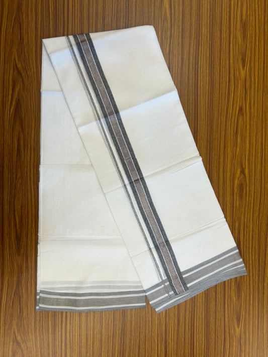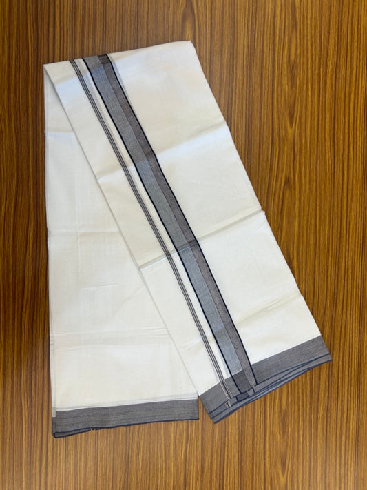 20% Discount ! KaithariKada Balaramapuram 100% Cotton Double Pure white Mundu/Dhoti- 100x80 - 1.5 inch Ash Grey Kara - 3.90mtr ( 8 muzham) - 36 KK5251 PMC