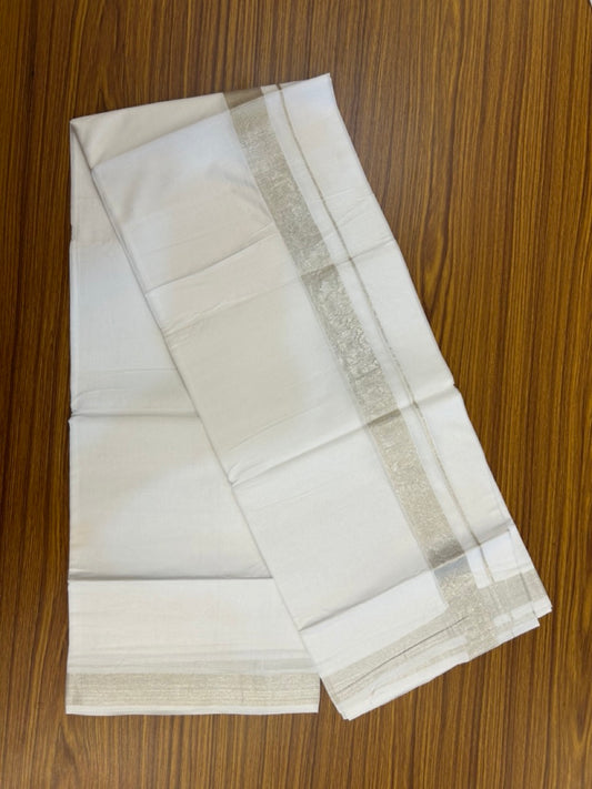 20% Discount ! KaithariKada Balaramapuram 100% Cotton Double Pure white Mundu/Dhoti- 100x80 - 1 inch Silver Kasav Kara - 3.90mtr ( 8 muzham) - 2 KK5251 PMC