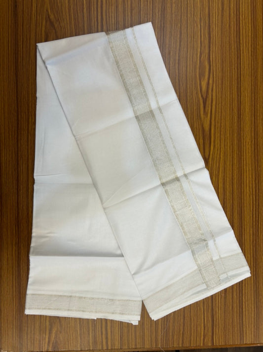 20% Discount ! KaithariKada Balaramapuram 100% Cotton Double Pure white Mundu/Dhoti- 100x80 - 1.5 inch Silver Kasav Striped Kara - 3.90mtr ( 8 muzham) - 3 KK5251 PMC