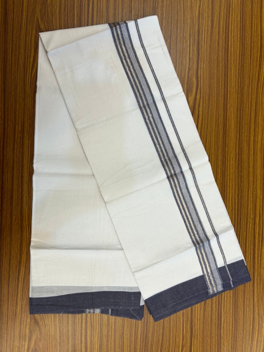 20% Discount ! KaithariKada Balaramapuram 100% Cotton Double Pure white Mundu/Dhoti- 100x100 - 1.25 inch Navy Blue & Silver Kasav Shaded Striped Kara - 4mtr ( 8 muzham) - 38 KK5253 GAN
