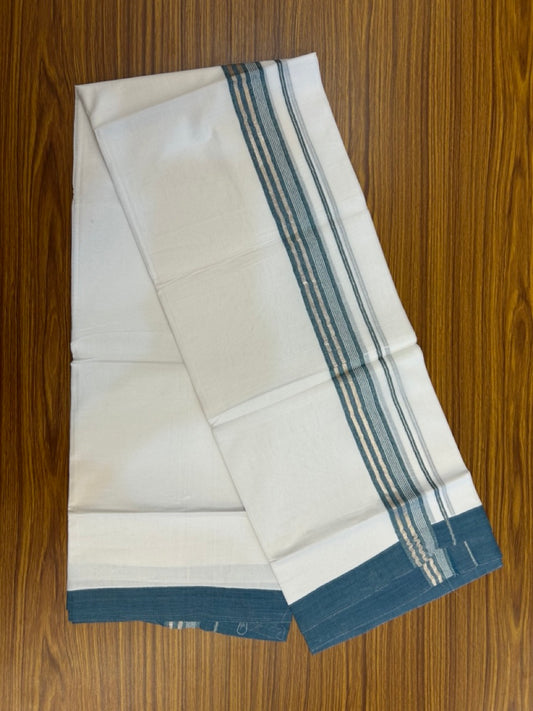 20% Discount ! KaithariKada Balaramapuram 100% Cotton Double Pure white Mundu/Dhoti- 100x80 - 1.5 inch Silver Kasav & Peacock Blue Striped Kara - 3.90mtr ( 8 muzham) - 5 KK5251 PMC