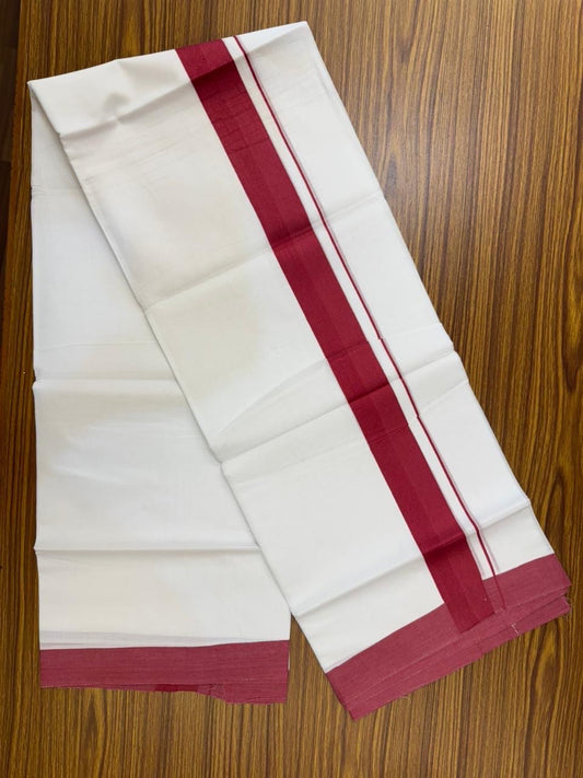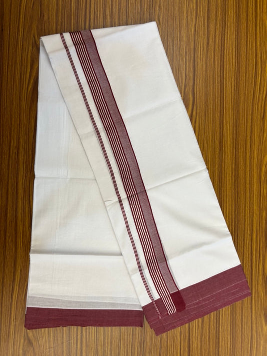 20% Discount ! KaithariKada Balaramapuram 100% Cotton Double Pure White Mundu/Dhoti - 100X80 - 6.5 inch Silver Kasav & Reddish Maroon Stripes kara 3.90 mtr (8 muzham) - 18 KK5305 PMC