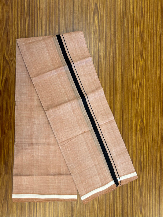 10% Discount !! KaithariKada 100% Pure Cotton - HANDLOOM Single Mundu/Dhoti Light Brown White Shaded COLOUR BODY & Black 0.5 inch Kara (2 meter / 4 muzham) - 21KK8020ELA