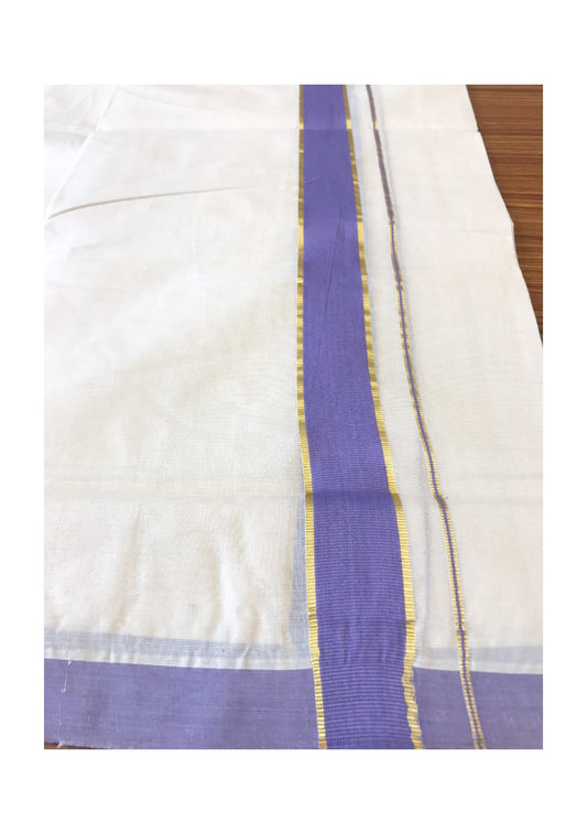 10% Discount KaithariKada Balaramapuram 100% Cotton Double Off white - (Unbleached) -Mundu/Dhoti-100X100- 2 inch Gold Kasav & Violet Kara- 16.