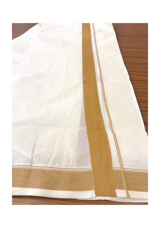 10% Discount! KaithariKada Balaramapuram 100% Cotton Double Off white - (Unbleached) - Mundu/Dhoti-100X100 - 1.75 inch Sand Brown Kara- 18.