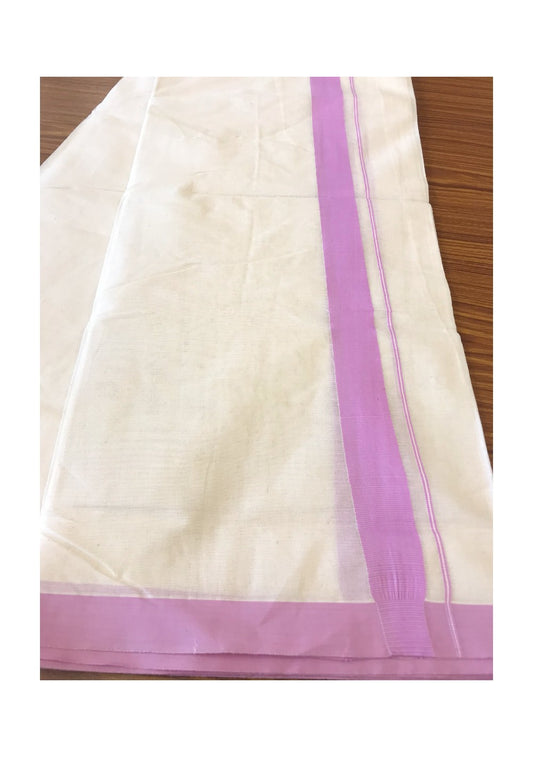 10% Discount! KaithariKada Balaramapuram 100% Cotton Double Off white - (Unbleached) - Mundu/Dhoti-100X100 - 1.75 inch Lavender Violet Kara- 22.