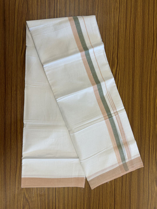 20% Discount ! Kaitharikada Balaramapuram 100% Pure Cotton Double Pure White Mundu/Dhoti - 100x80 - 1.25 inch Olive Green & Light Peach Striped Shaded Chutty 3.90 mtr (8 muzham) - 16 KK5312 PMC