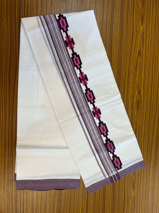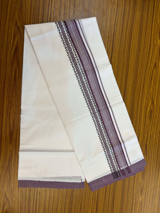 20% Discount ! KaithariKada Balaramapuram Cotton Double Pure white Mundu/Dhoti- 60s - 2.5 inch Wine Purple Printed Shaded Stripes Design Kara - 3.65 mtr (8 muzham) - 41 KK5309 GAN