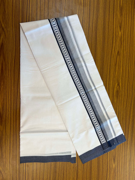 20% Discount ! KaithariKada Balaramapuram Double Pure White Mundu/Dhoti - 100x80 - 1.75 inch Navy Blue Shaded Silver Striped kara - 3.90 Mtr (8 Muzham) - 5 KK5282 PMC