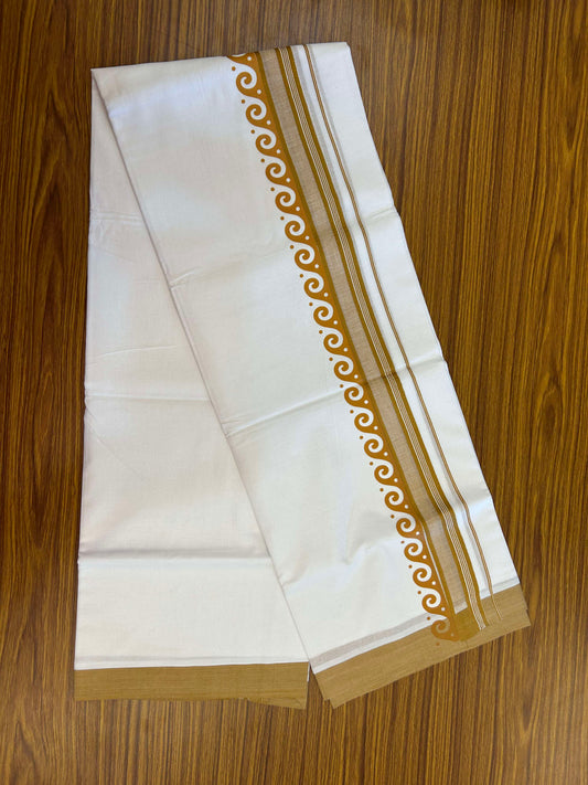 20% Discount ! KaithariKada Balaramapuram Cotton Double Pure white Mundu/Dhoti- 60s - 2.5 inch Brown Printed Shaded Stripes Design Kara - 3.65 mtr (8 muzham) - 36 KK5309 GAN