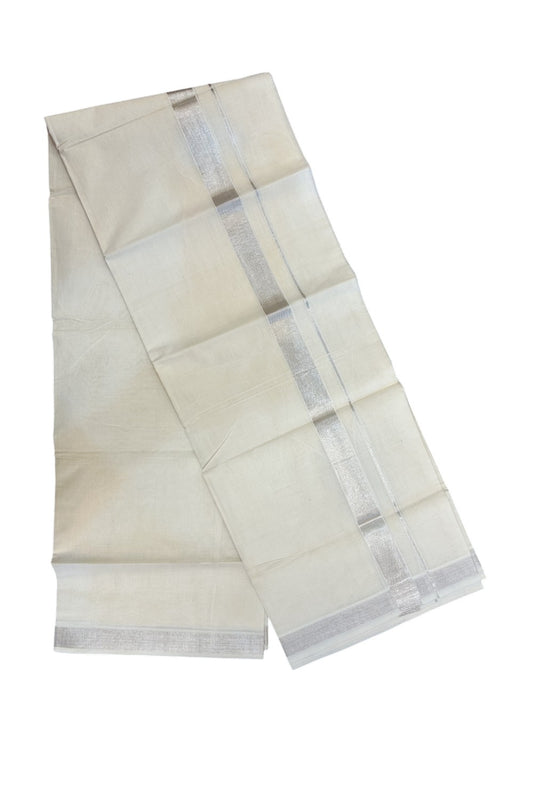20% DISCOUNT! KaithariKada Balaramapuram 100% Cotton Off white (Unbleached) Double Mundu/Dhoti- 80x90 - 1 inch Silver Kasavu kara - 22KK5182VAS