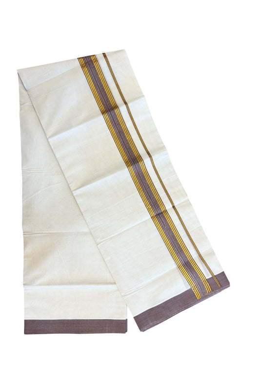 20% DISCOUNT! KaithariKada Balaramapuram Double OFF WHITE Mundu/Dhoti - 80x80- 1.5 Inch Gold Kasavu & Rosy Brown Shaded striped Kara - 10KK5182VAS