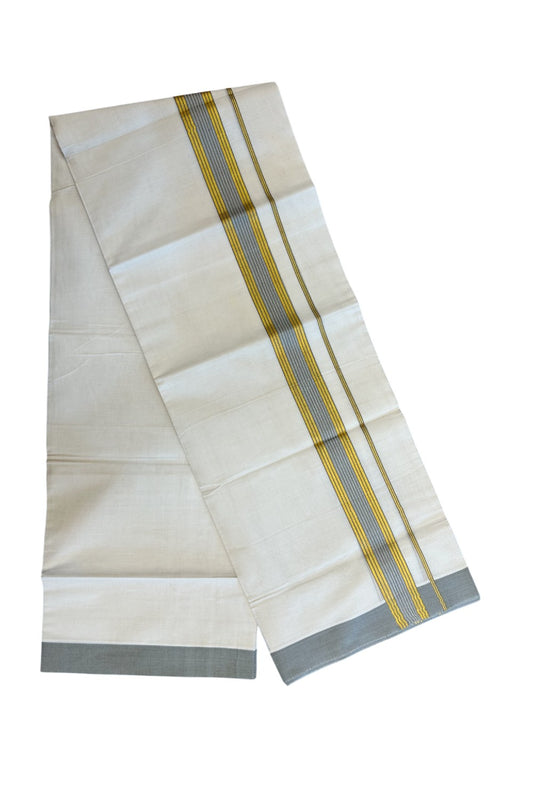 20% DISCOUNT! KaithariKada Balaramapuram Double OFF WHITE Mundu/Dhoti - 80x80 - 1.5 Inch Gold Kasavu & Grey Shaded striped Kara - 15KK5182VAS